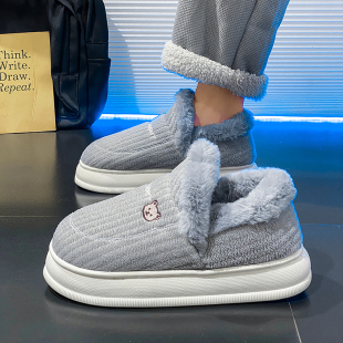 男士 男款 冬季 室内家居厚底防滑保暖毛毛绒棉鞋 包跟2025新款 棉拖鞋