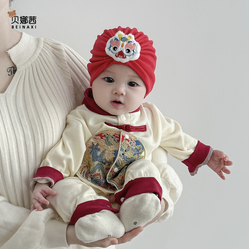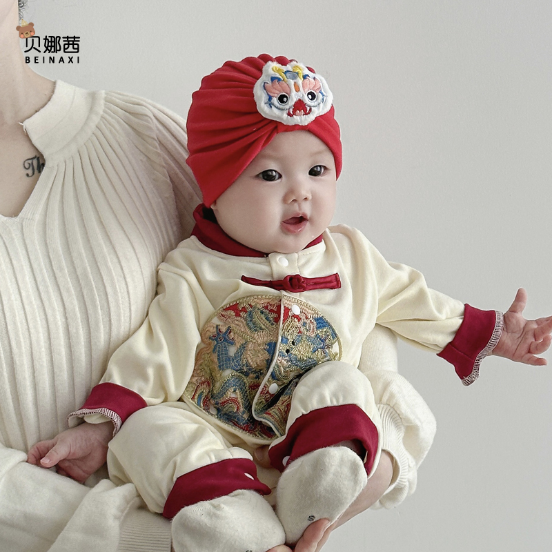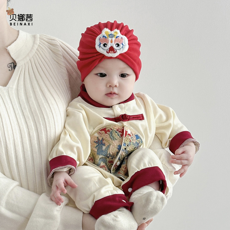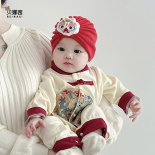 婴儿帽子春秋款 婴幼儿胎帽新生儿红色喜庆满月帽小月龄宝宝周岁帽