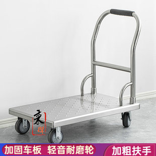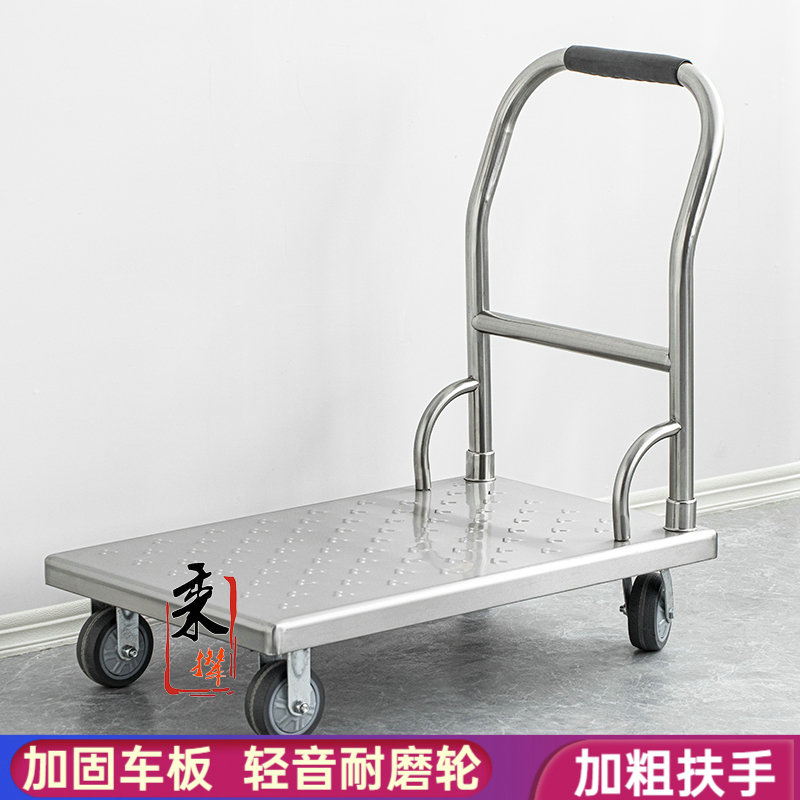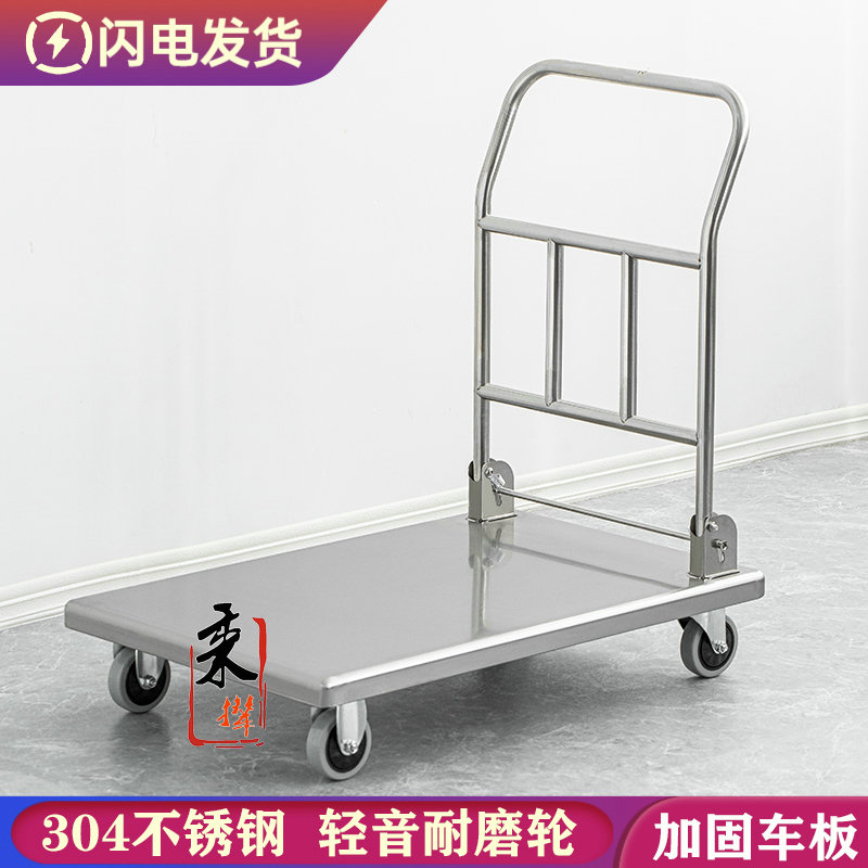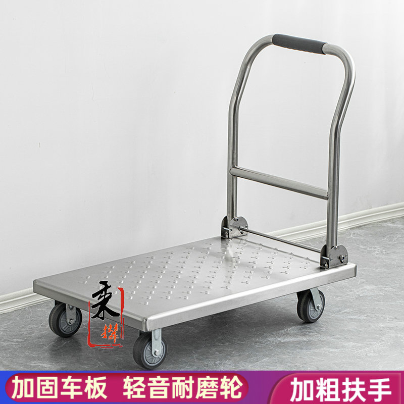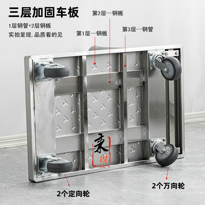 加厚小手推车不锈钢搬运拉货车折叠便携酒店厨房平板车手拉拖车