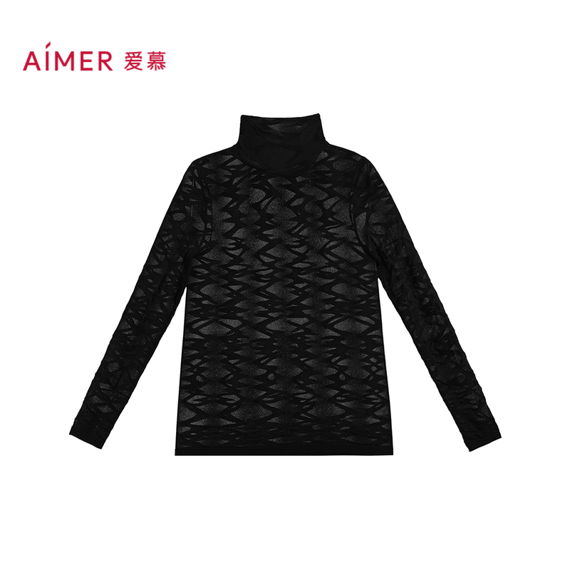 爱慕24秋冬皮肤衣保暖内衣女轻薄性感修身 上衣AM72A311 小高领长袖