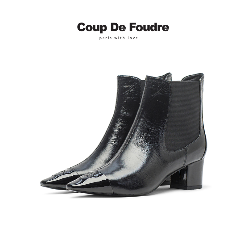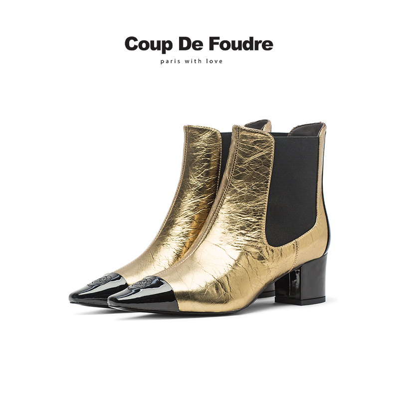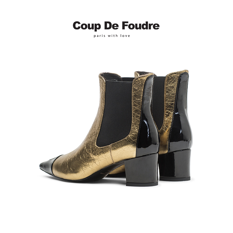 复古时装 CDF女鞋 法式 经典 靴拼接尖头粗跟瘦瘦靴女靴子 轻奢秋冬季