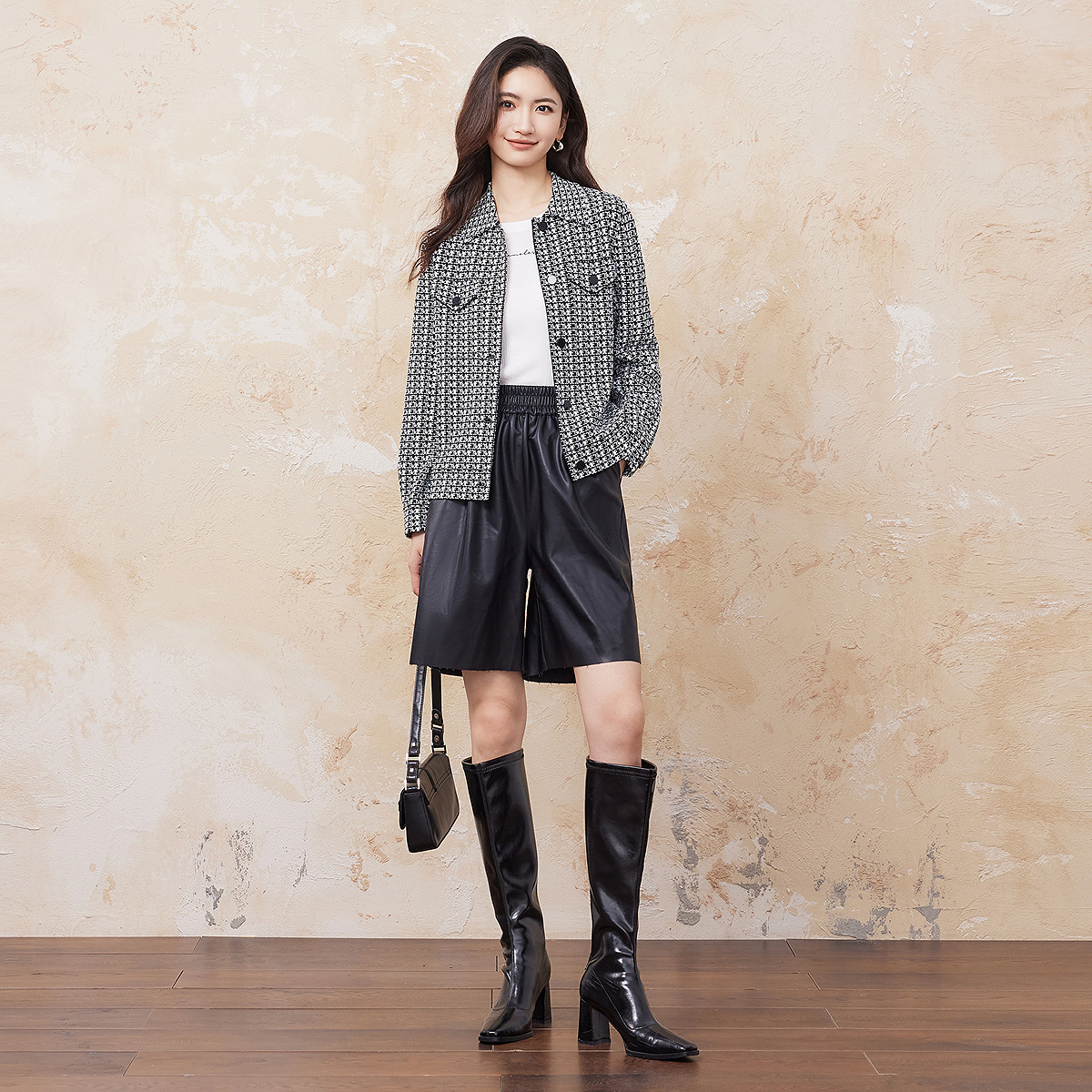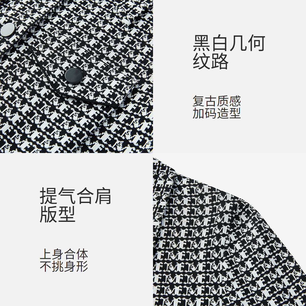 上衣男女 复古翻领夹克格子拼接短外套潮休闲工装 Achock官方店