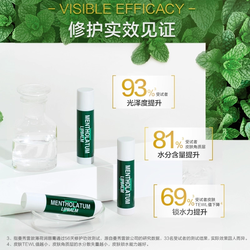 滋润防晒舒缓修护唇膜 曼秀雷敦薄荷润唇膏无色保湿 下拉领补贴
