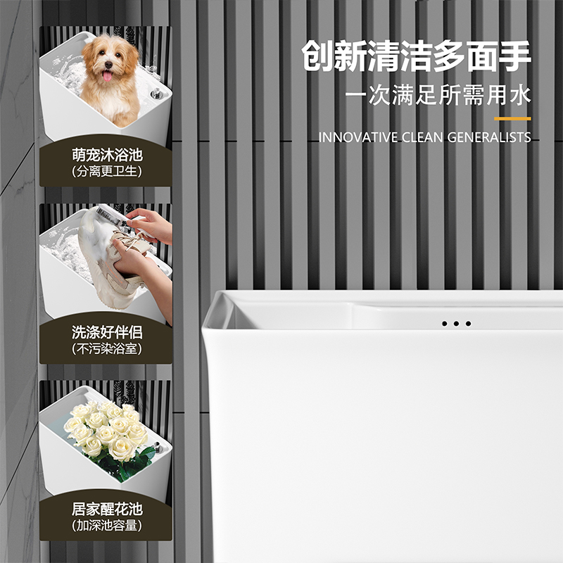 落地式 窄长竖型小户型陶瓷拖把池阳台拖布池卫生间洗地拖盆水槽盆
