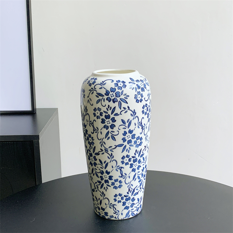 青花瓷花瓶釉下彩手绘高温陶瓷摆件新中式 饰品插花器 客厅博古架装