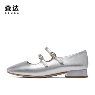 红色玛丽珍鞋 法式 百思图莫奈花园25秋新款 女单鞋 乔欣明星同款