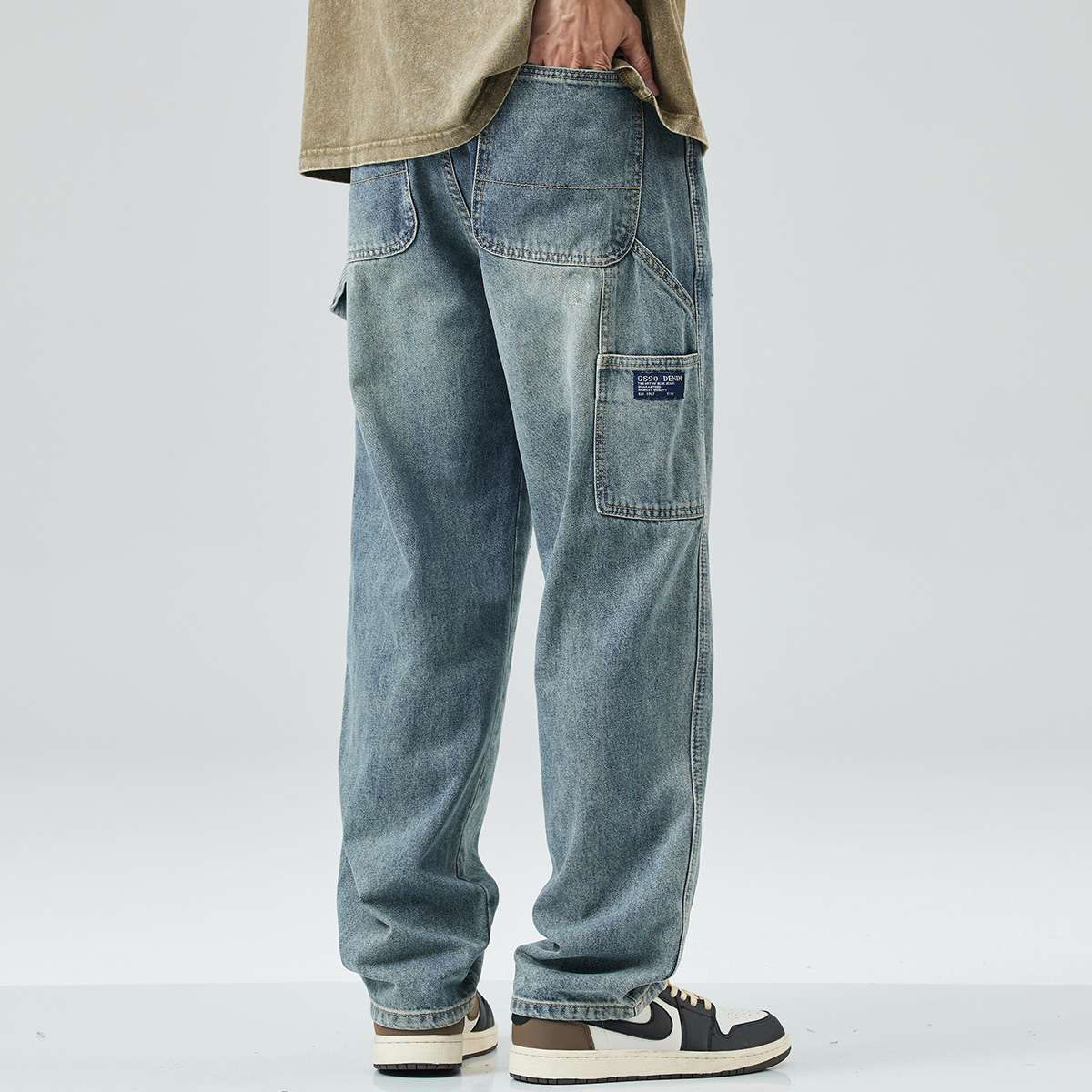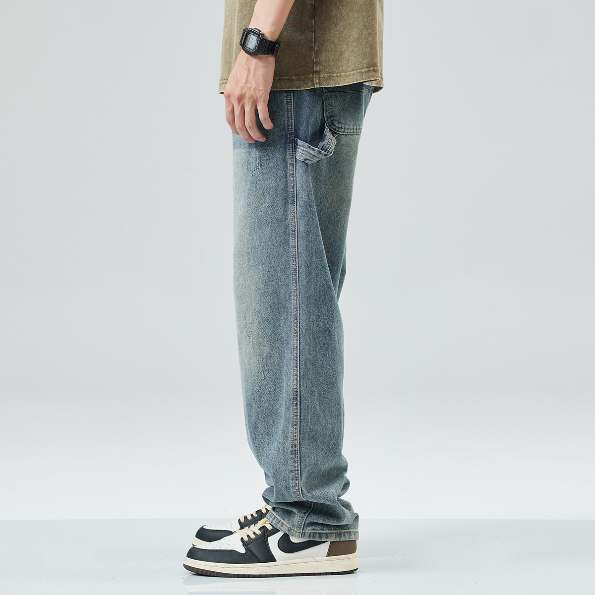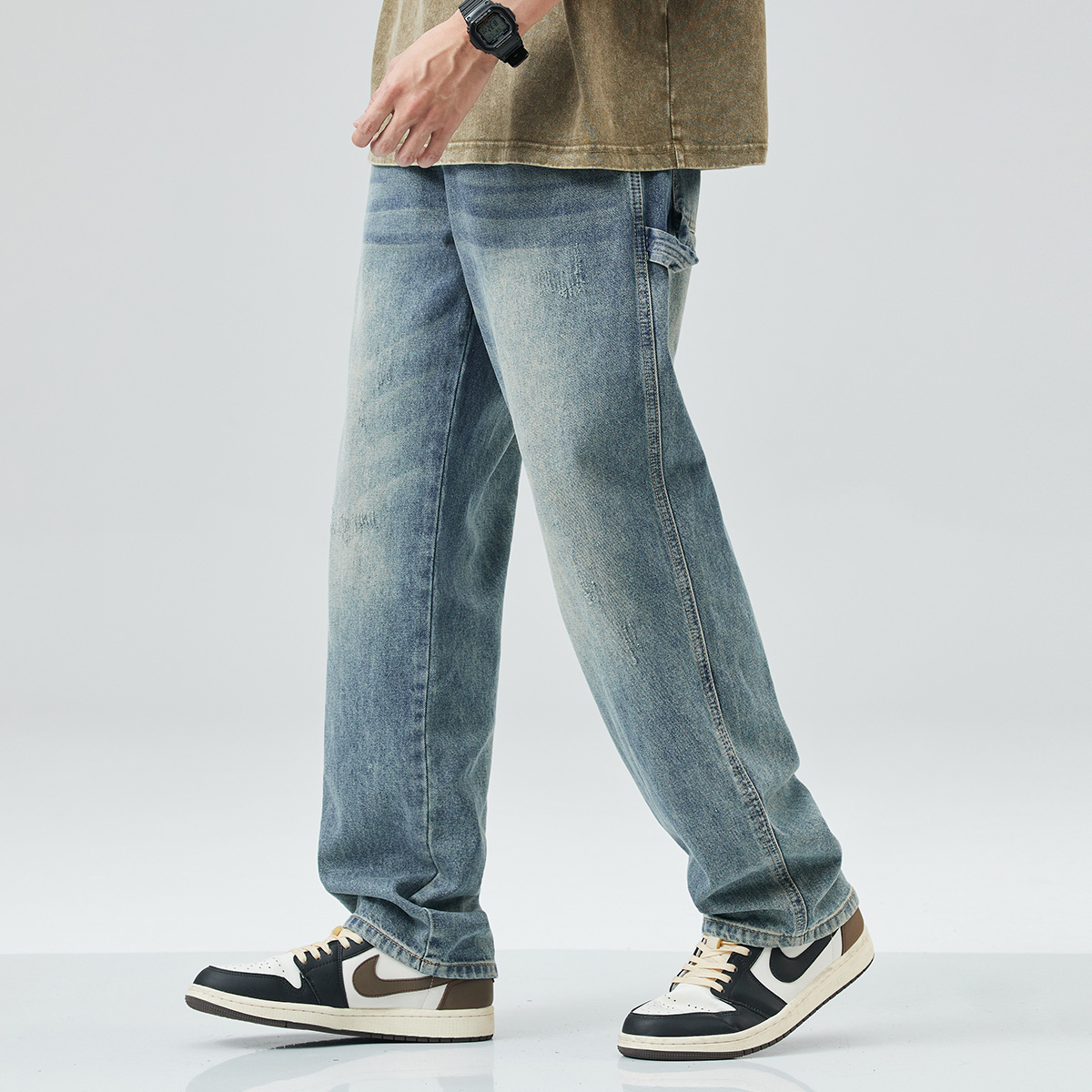 高街宽松复古纯棉直筒阔腿裤 hansca破洞牛仔裤 美式 新款 男潮牌夏季