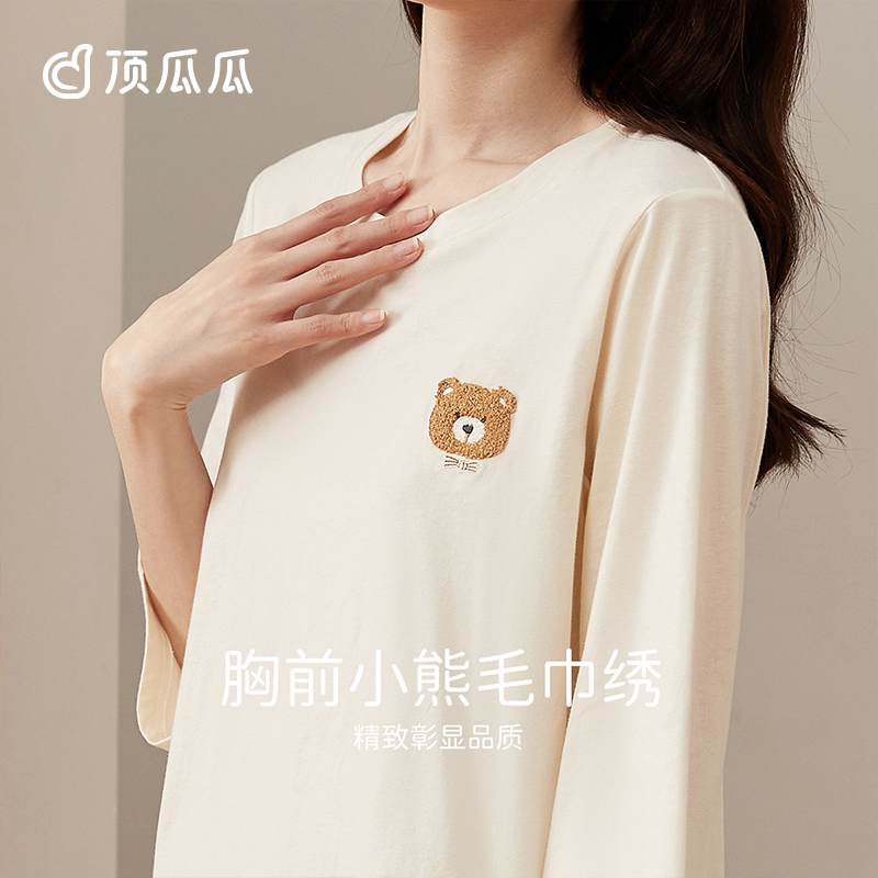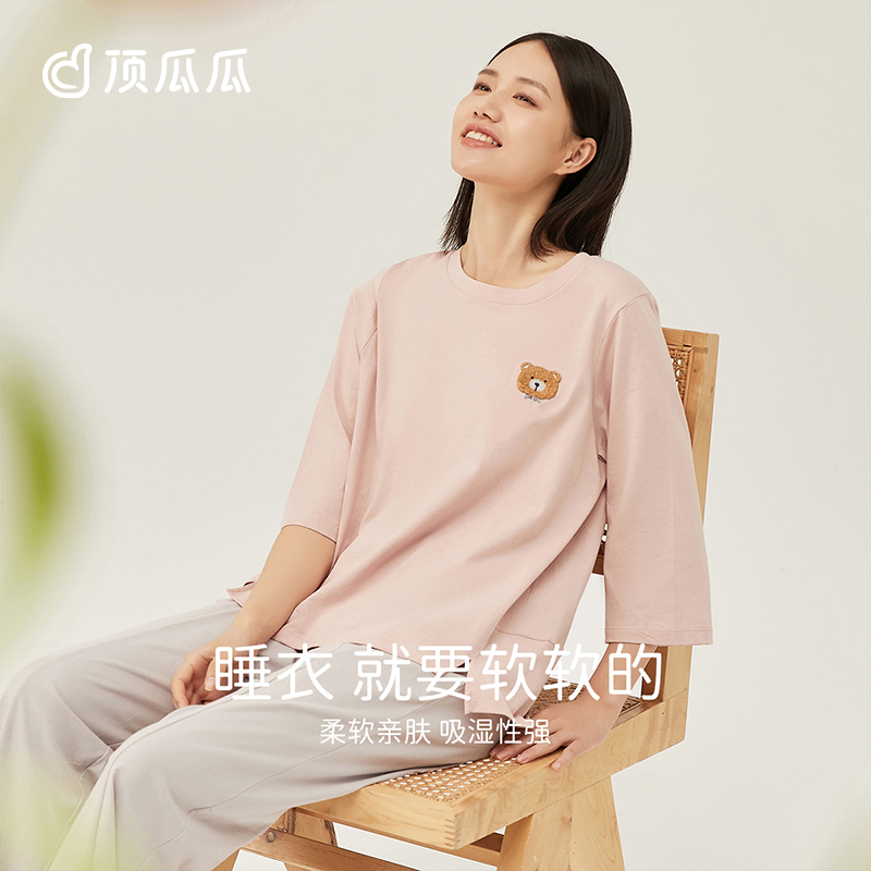 夏款 顶瓜瓜夏季 可外穿家居服套装 宽松薄款 睡衣女士纯棉七分袖