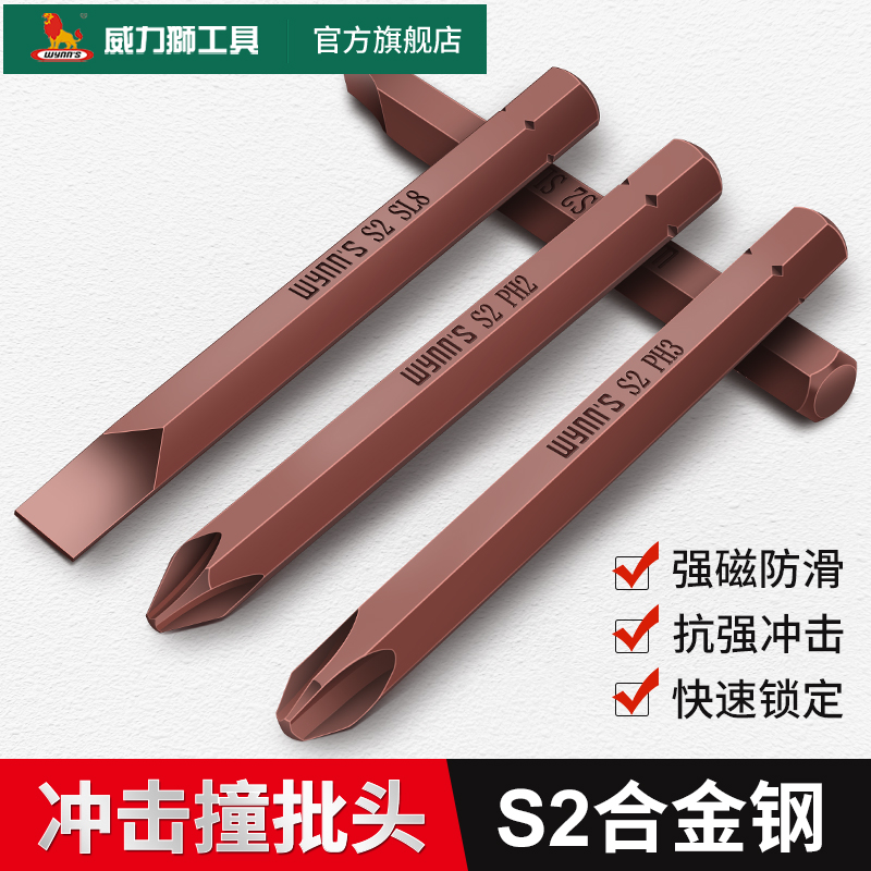 威力狮十字撞批头一字冲击螺丝刀S2冲击批8mm可敲打螺丝批刀头PH2