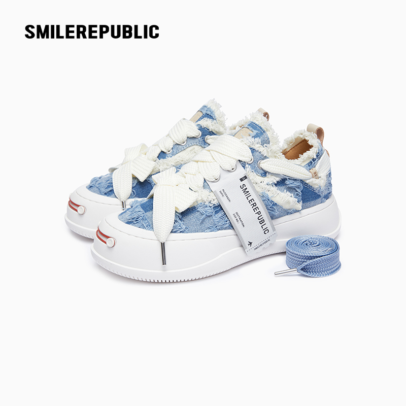 顽刻官方海军蓝春季 校园风W系列翻毛皮帆布拼接男女国潮滑板鞋