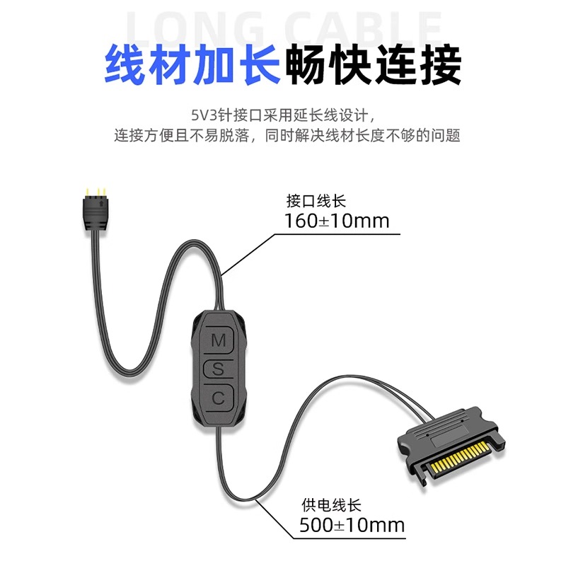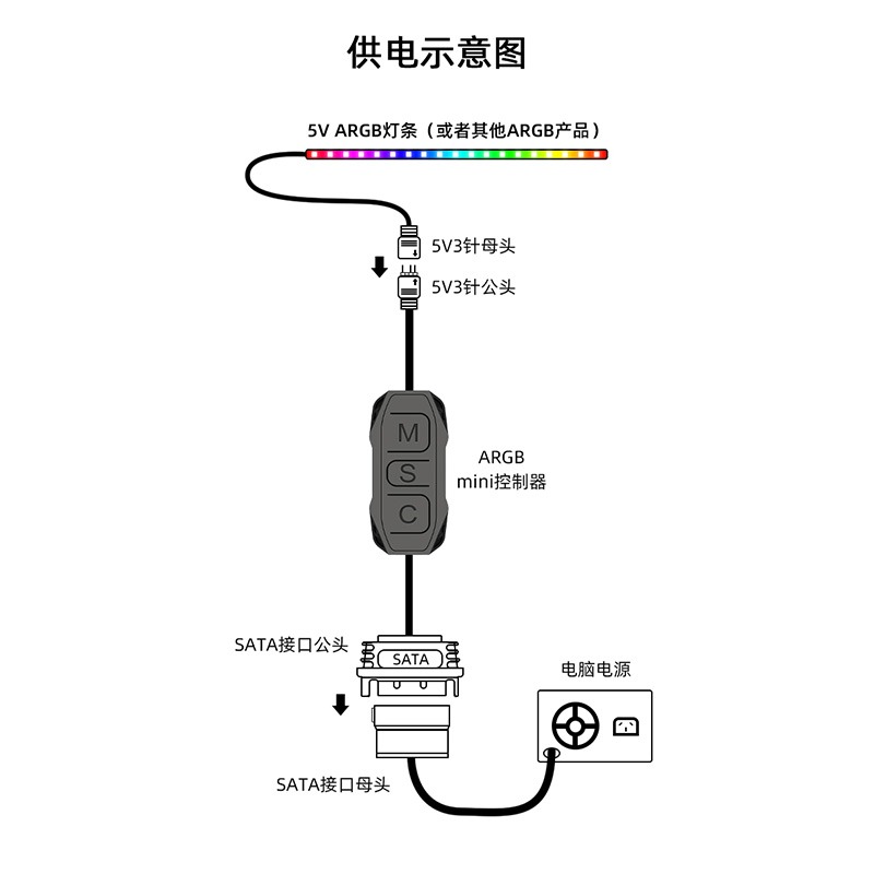 华顾ARGB控制器 5V3针转SATA供电主板神光同步机箱风扇灯光控制器