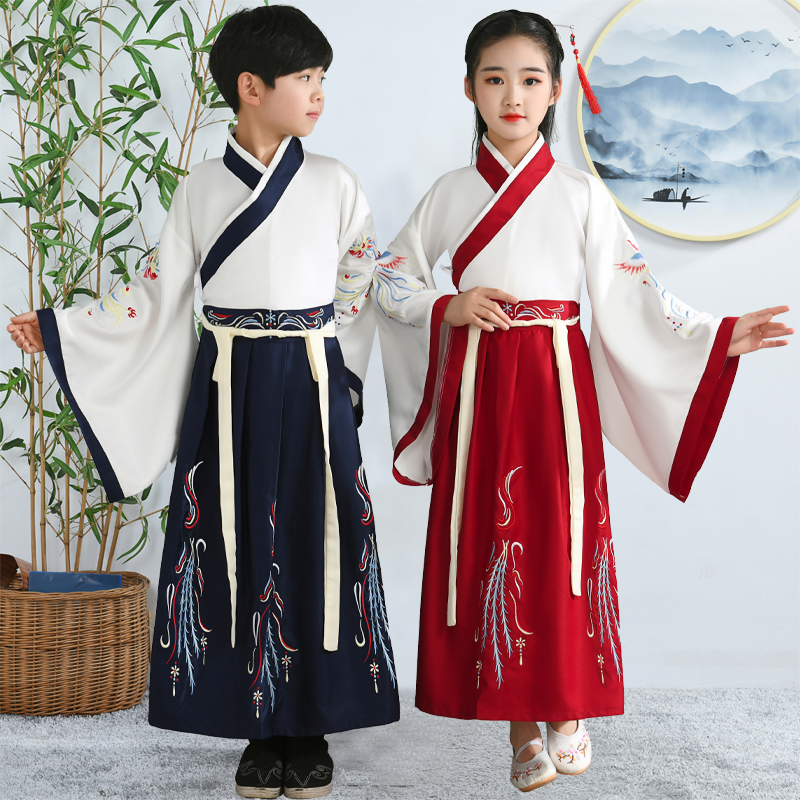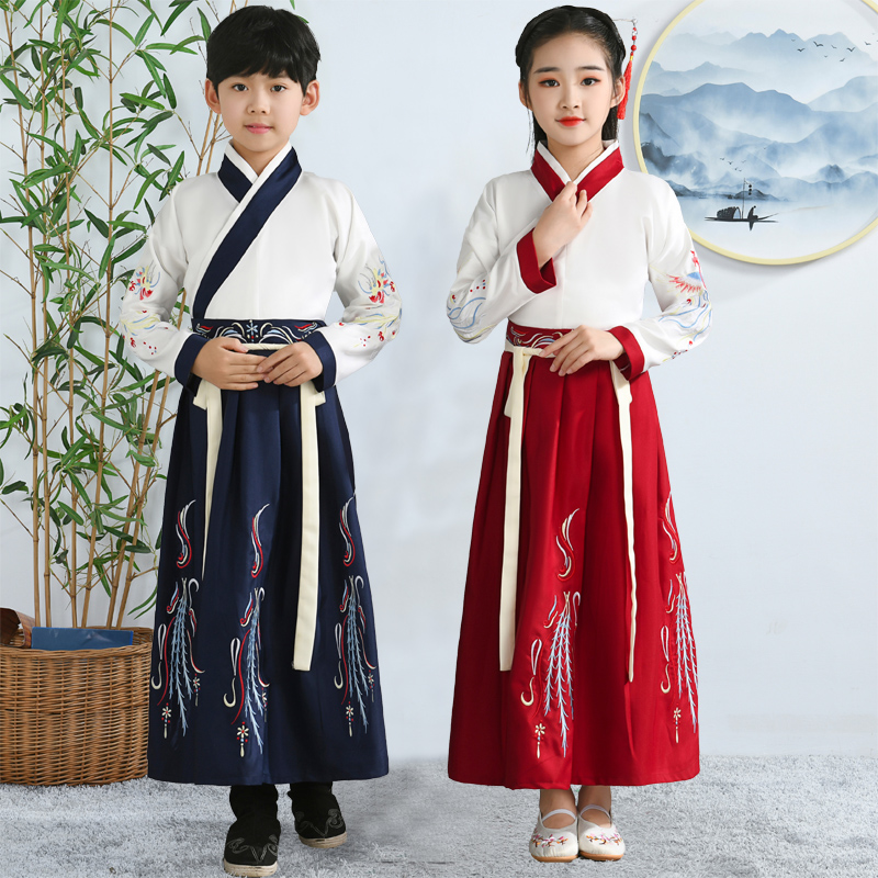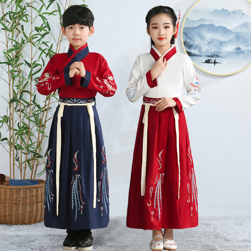 儿童国学服男女古装 表演服 汉服书童中国风小学生开笔礼花木兰同款
