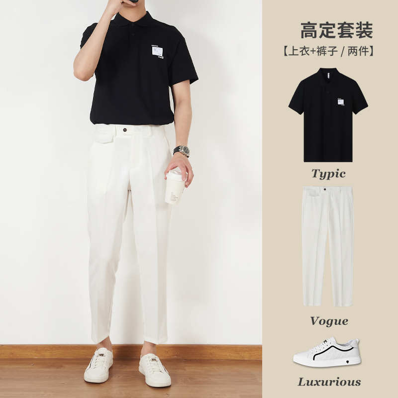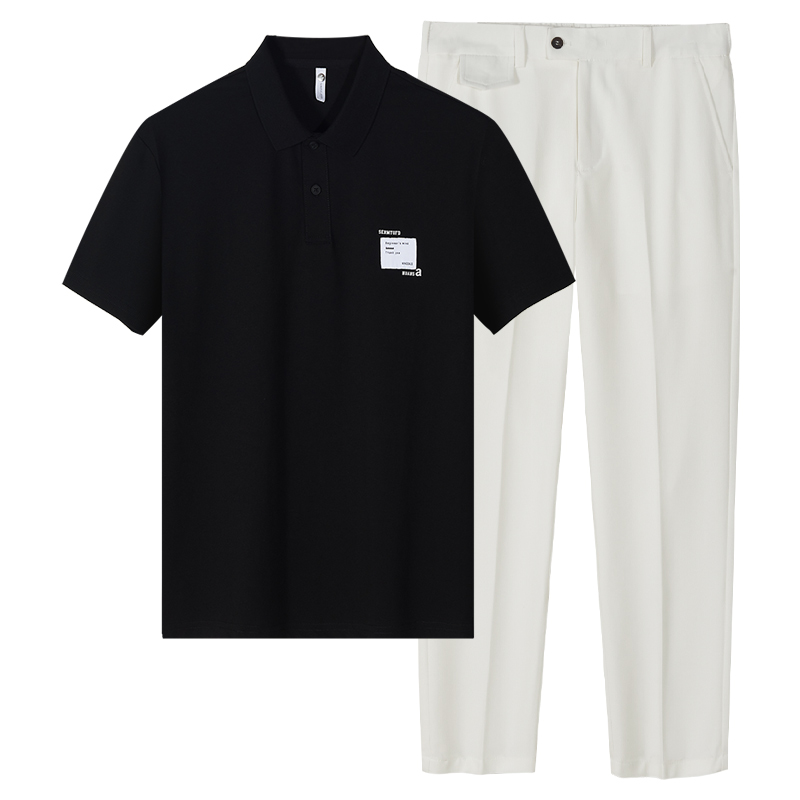 t恤男新款 潮牌男士 时尚 夏季 休闲青年潮流搭配两件套 套装 黑色短袖