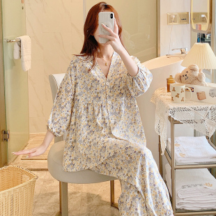 绵绸空调家居服套装 七分袖 宽松清新碎花夏款 棉绸睡衣大码 女士夏季