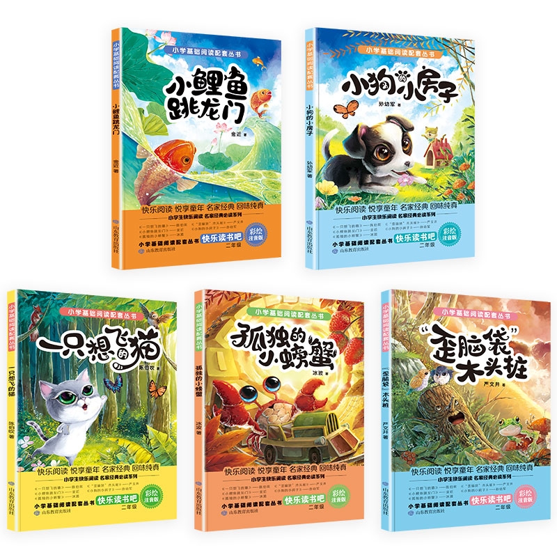快乐读书吧二年级上课外书正版 猫小房子小螃蟹歪脑袋桩下册语文阅读书籍2七寓言上下童年读者作文民间 小鲤鱼跳龙门5册一只想飞