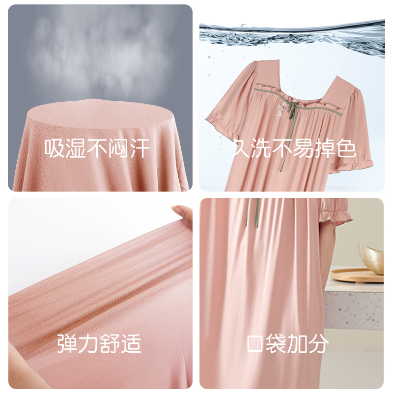 睡衣夏季 韩版 加大码 棉绸睡裙女士短袖 人造棉宽松舒适居家服 加长款