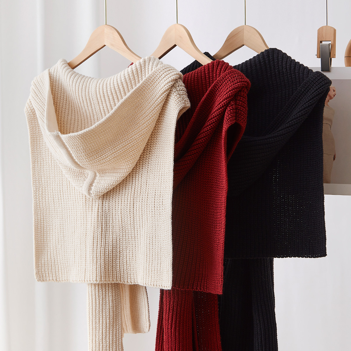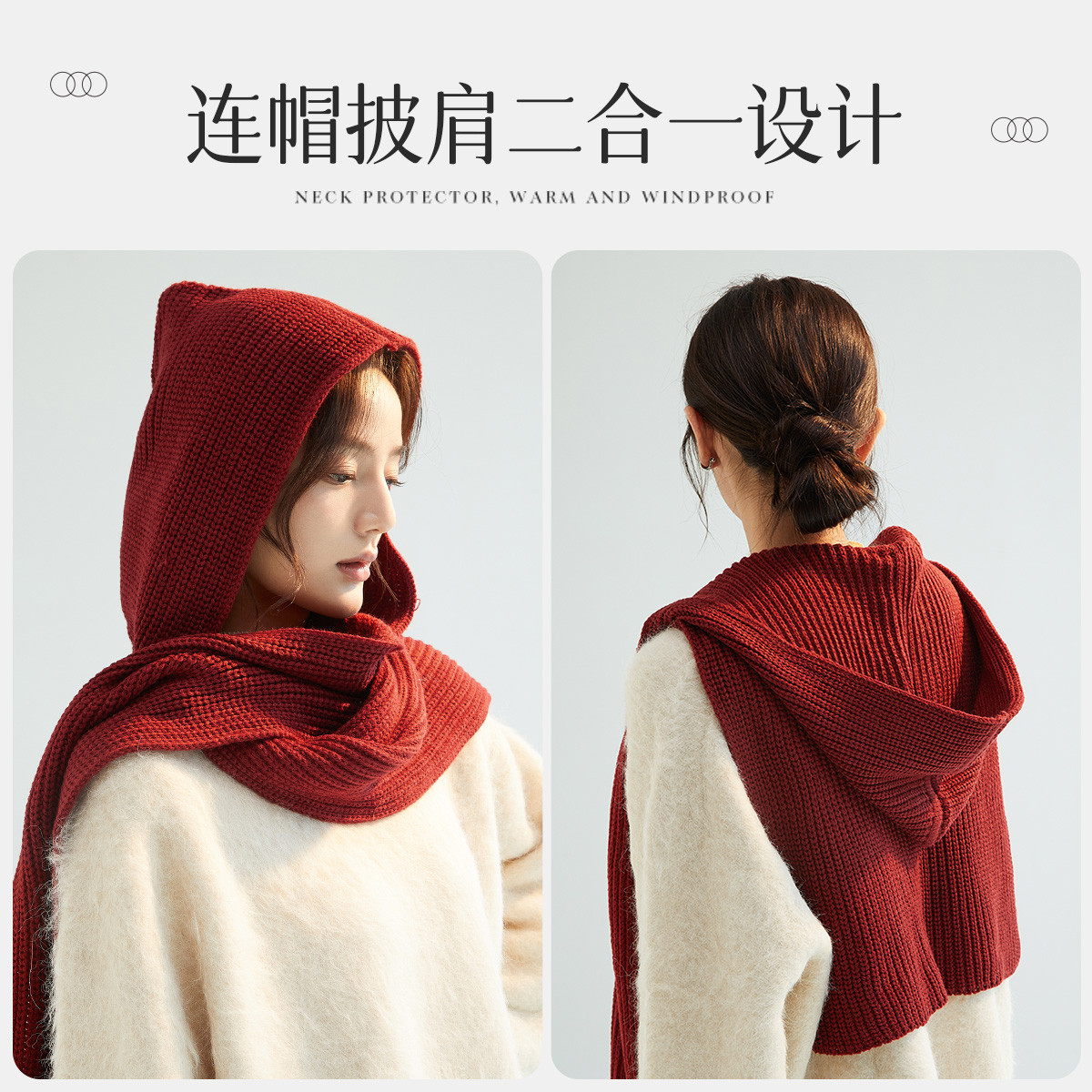 宏达 秋冬红色两用二合一披肩帽子女保暖针织防风韩系氛围感外搭