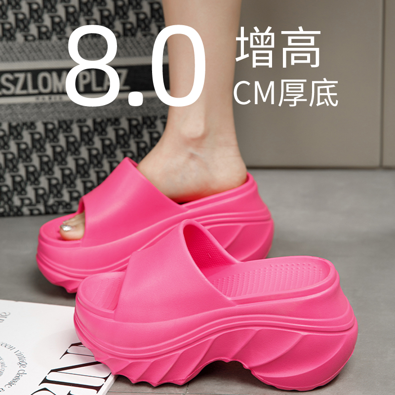 高跟凉拖鞋 海边沙滩一字拖踩屎感小个子韩版 女夏外穿新款 厚底拖鞋