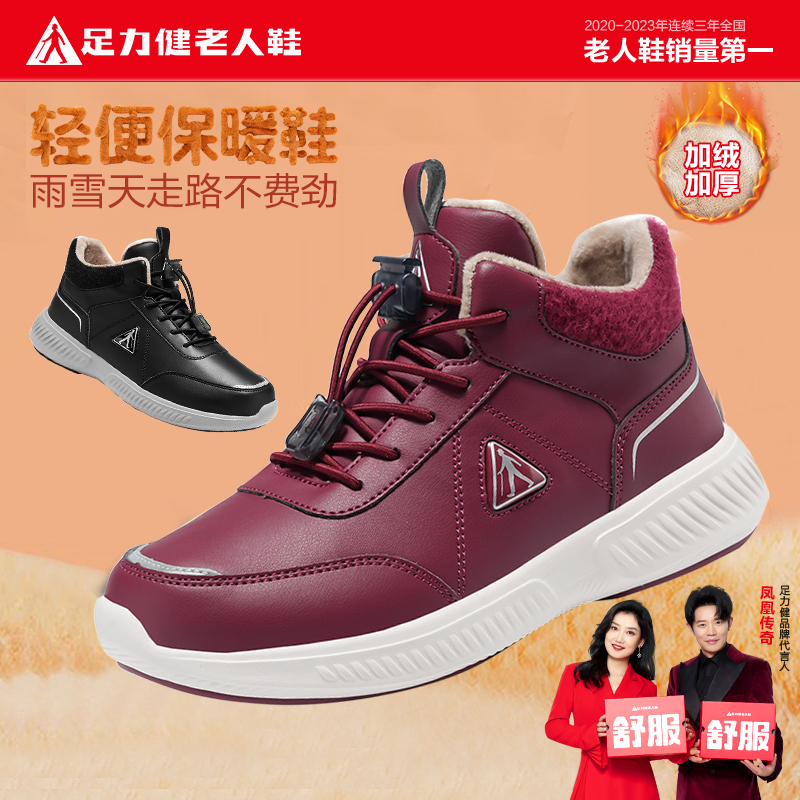 正品 保暖雪地靴妈妈鞋 2025新款 女士加绒厚底棉鞋 冬季 足力健老人鞋