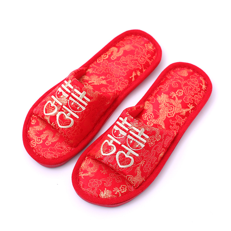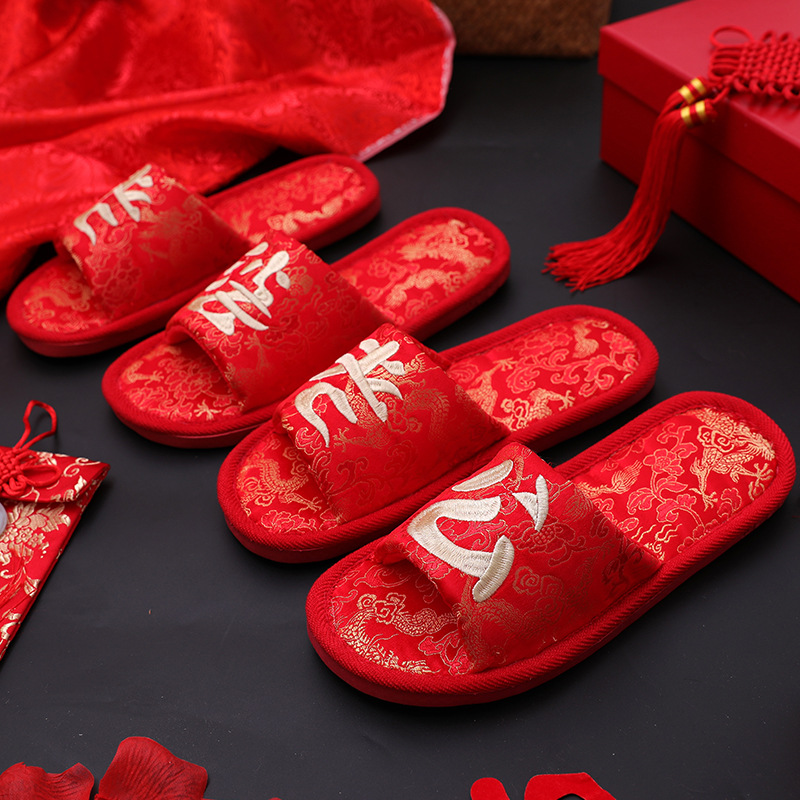 时尚 结婚情侣红囍拖鞋 中式 婚礼喜庆拖鞋 家 新款 唐装 2020红拖鞋