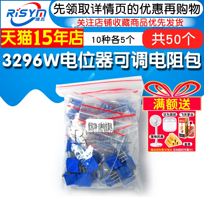 100K 元 100欧 10种3296W电位器可调电阻包 10种各5个共50个 件包
