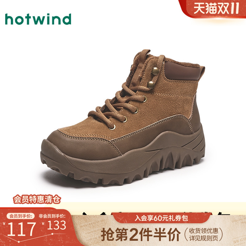 女鞋 热风冬季 户外休闲时尚 女士复古舒适高帮鞋 厚底增高 新款