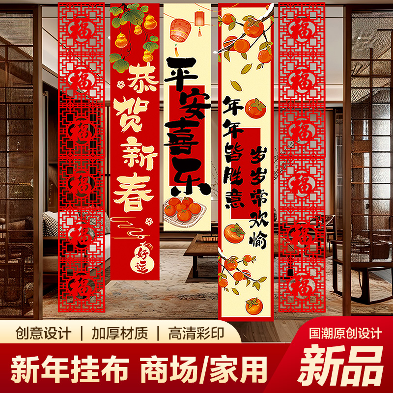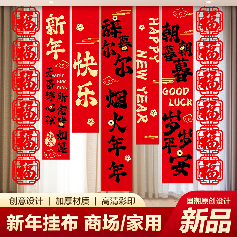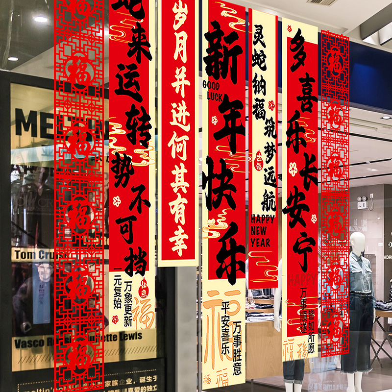 2025新款 饰品 长条福字墙贴商场拉花过新年春节布置室内挂件乔迁装