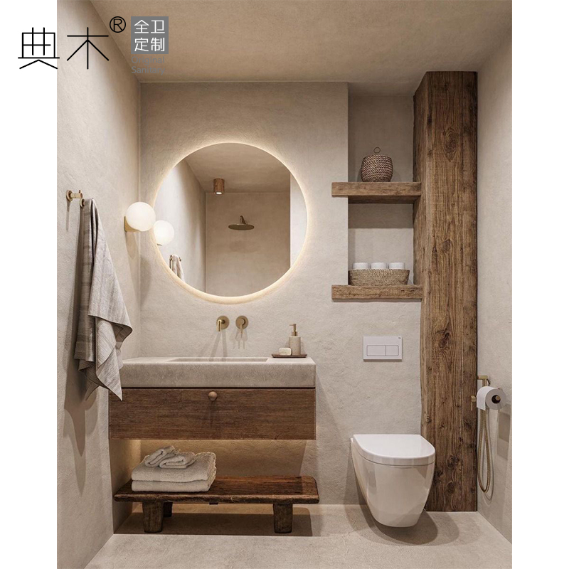 2025新款 浴室柜中古风侘寂复古卫生间洗漱台一体盆民宿卫浴柜定制