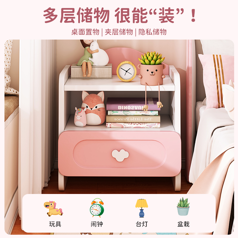 卧室床头柜日式 收纳柜 多层置物架家用客厅零食玩具储物柜子抽屉式