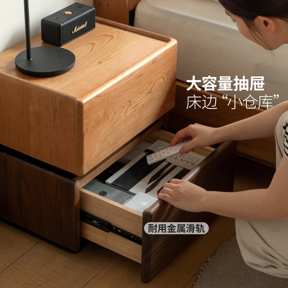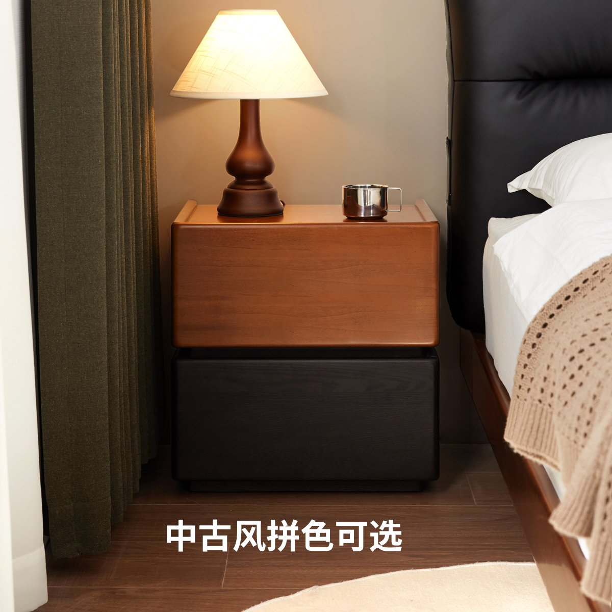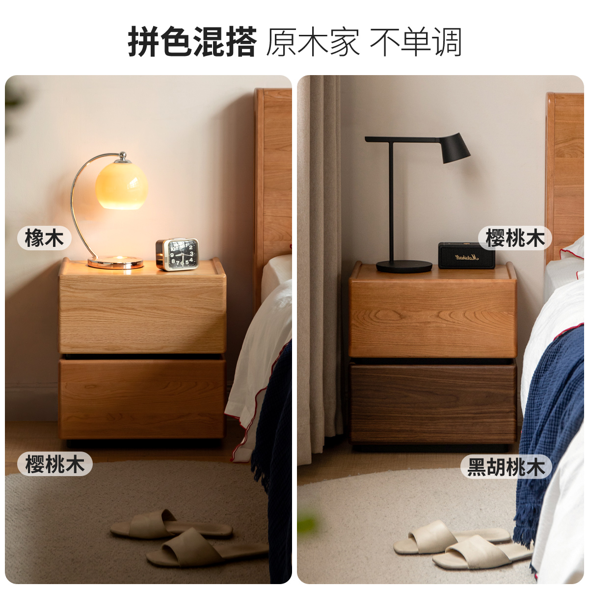 源氏木语百伦沙实木床头柜拼色床边柜储物柜黑胡桃木橡木床尾柜
