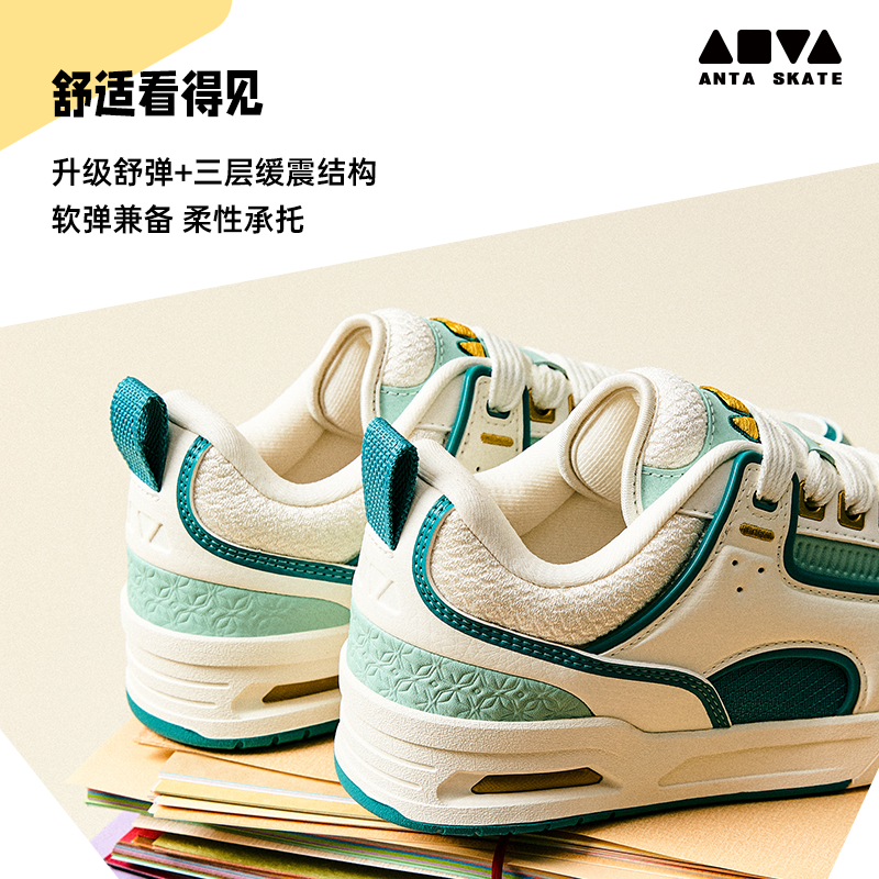 撞色复古板鞋 百搭女鞋 女2025秋季 运动鞋 122518040 新款 安踏骜杰