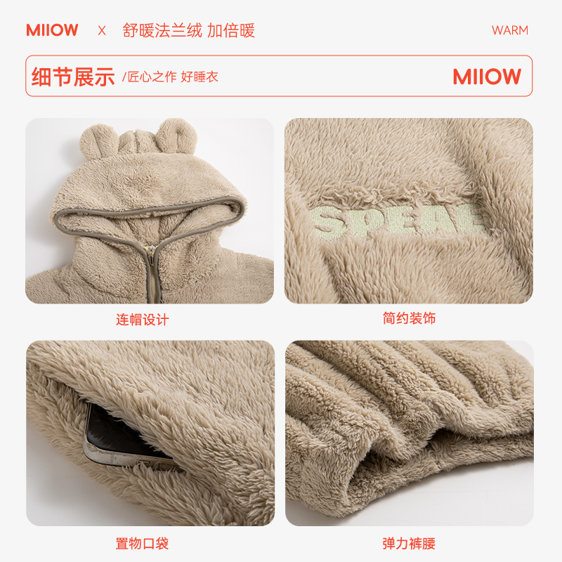 猫人珊瑚绒睡衣女秋冬季 加厚连帽可爱保暖法兰绒可外穿家居服