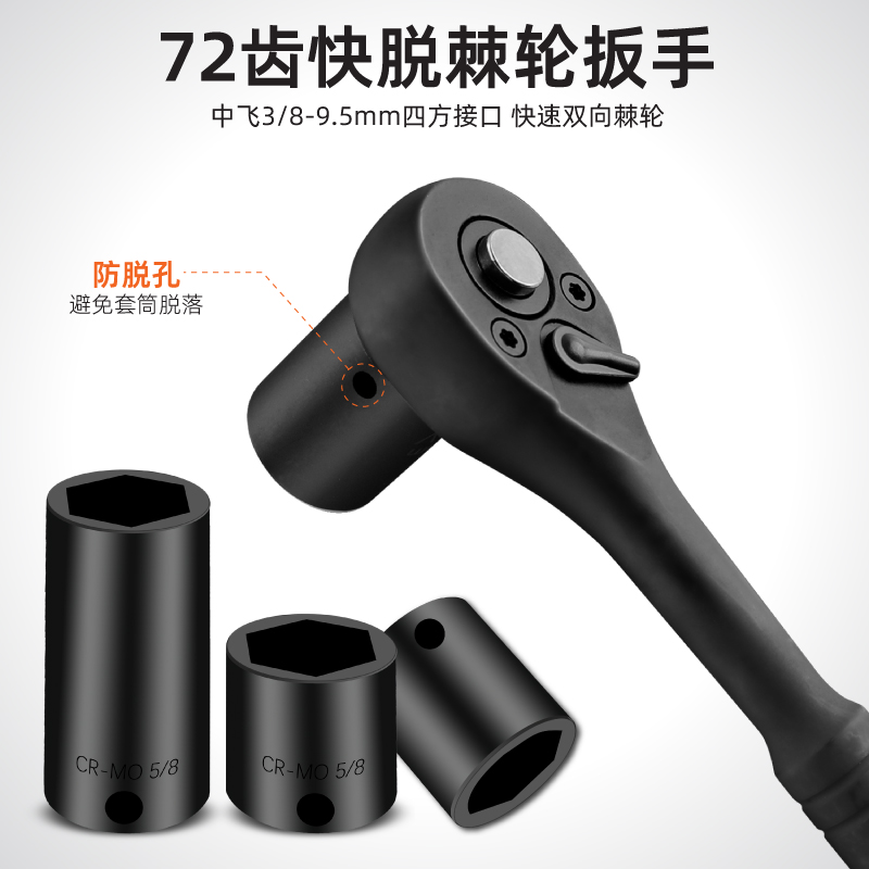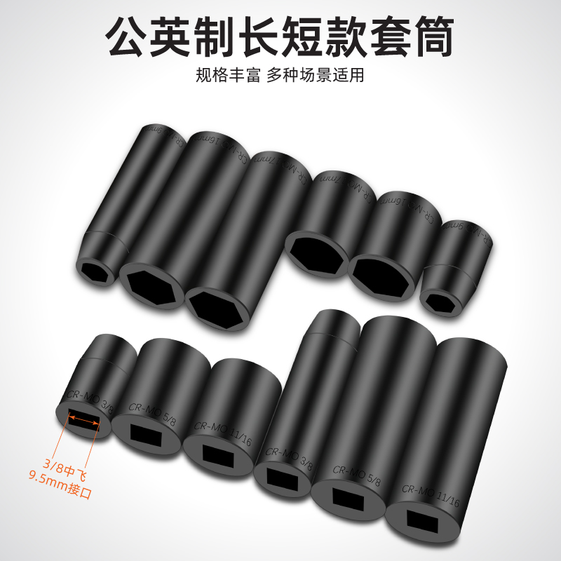 加长六角风炮套筒头棘轮冲击套筒工具套装 50件3 8中飞公英制套筒