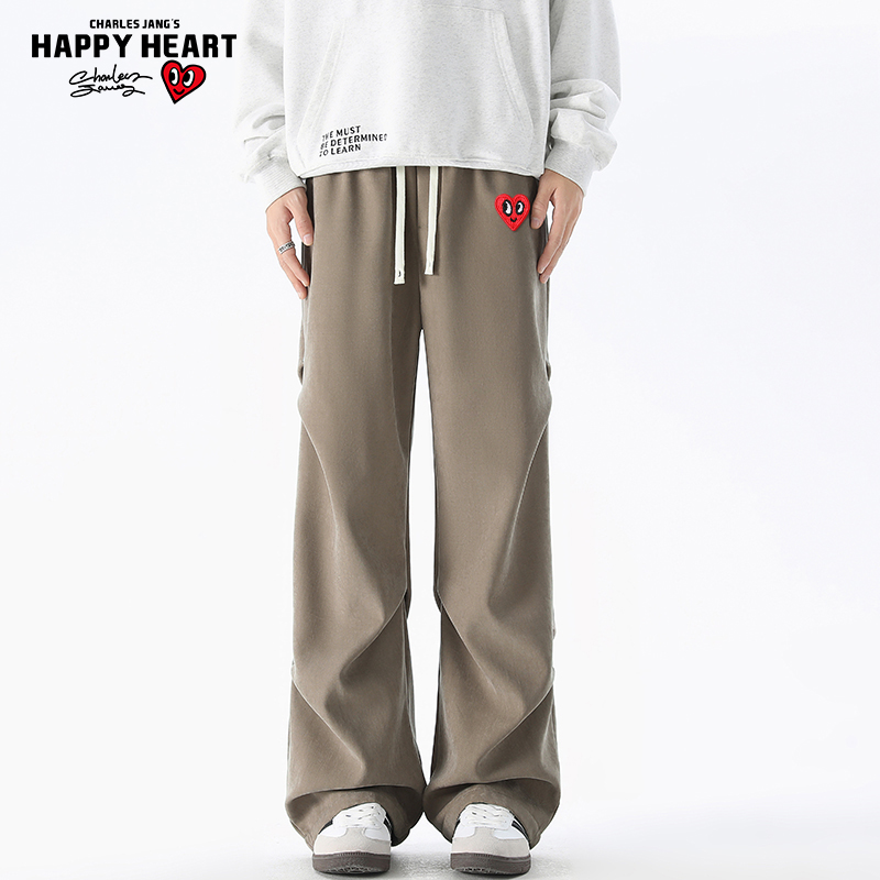 查尔斯桃心2025年春秋新款 子男情侣直筒宽松 垂感加绒加厚休闲长裤