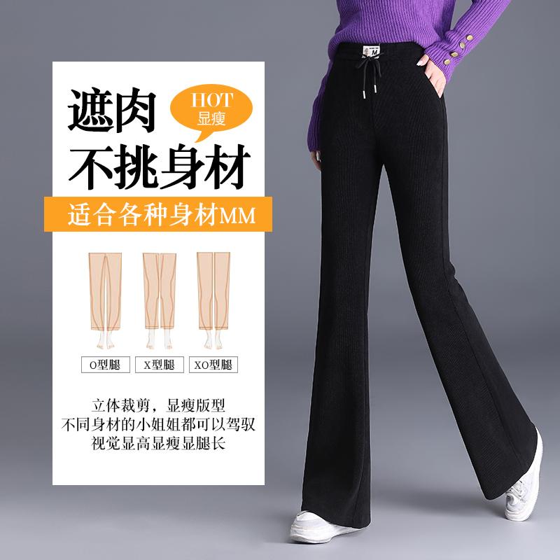 加绒微喇裤 百搭喇叭裤 高腰显瘦冬季 松紧腰休闲裤 子 女2025春秋新款