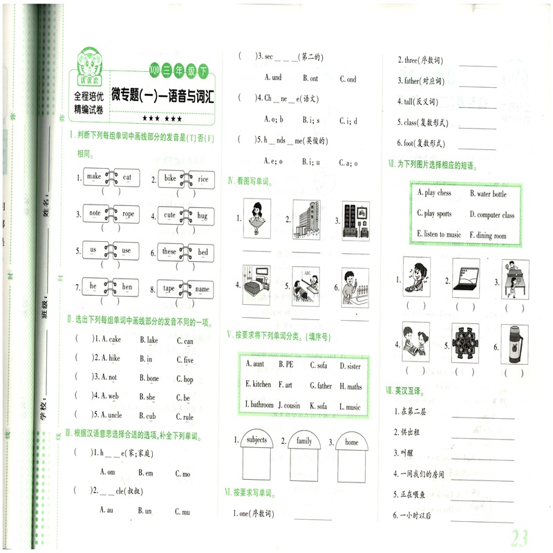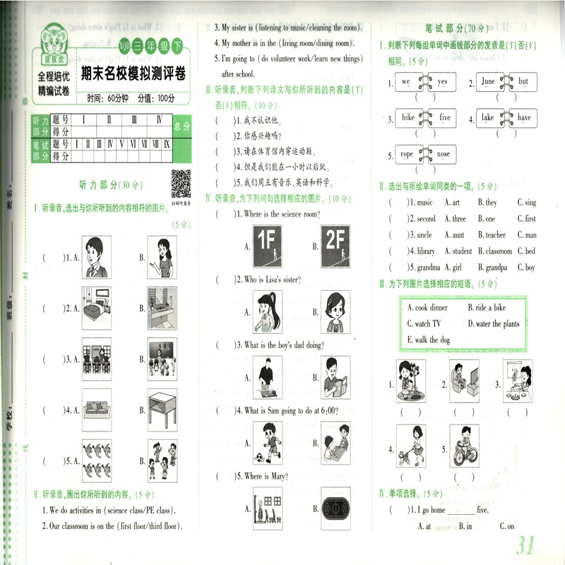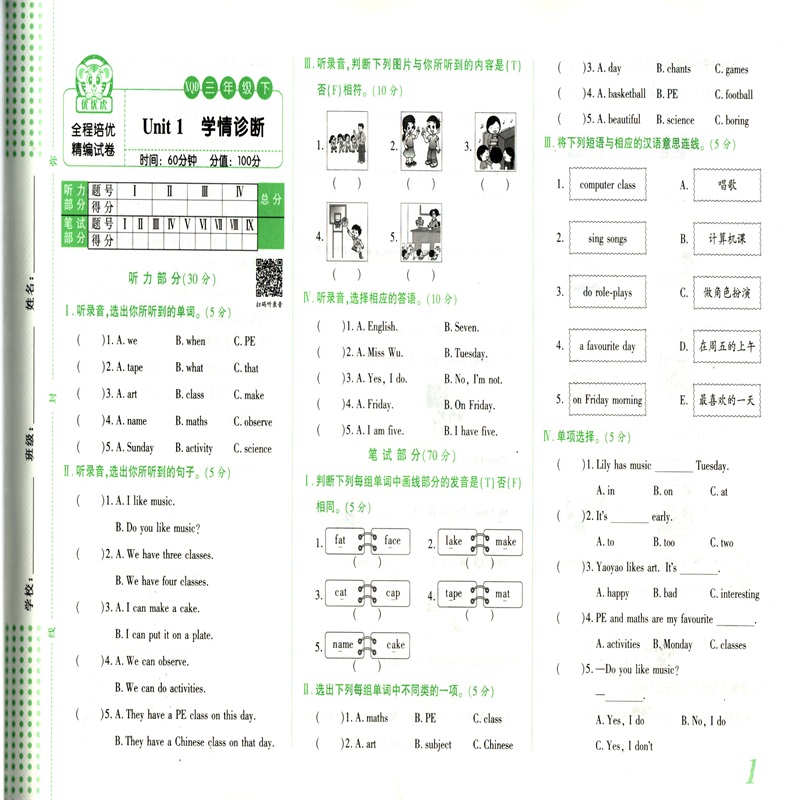 一年级起点 新起点 3年级下同步试卷期中期末试卷含听力 黄冈海淀全程培优必刷题小学英语三年级下册人教版 2025优优虎新版