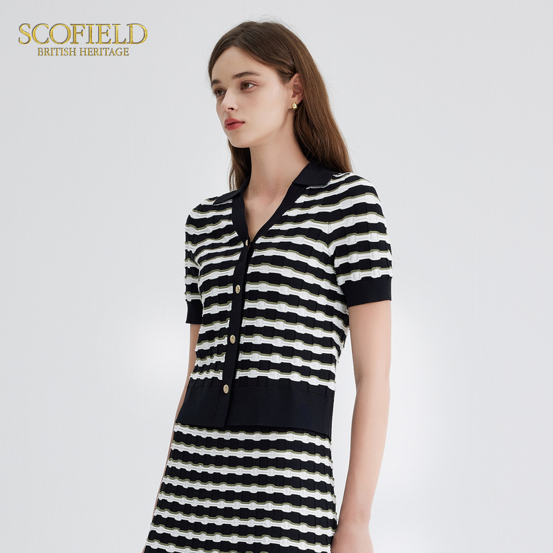 针织衫 条纹短袖 长袖 开衫 毛衣外套 RARN2025秋装 两件套圆领修身 新款