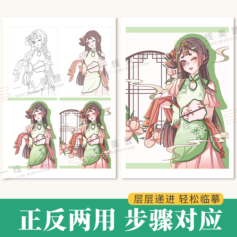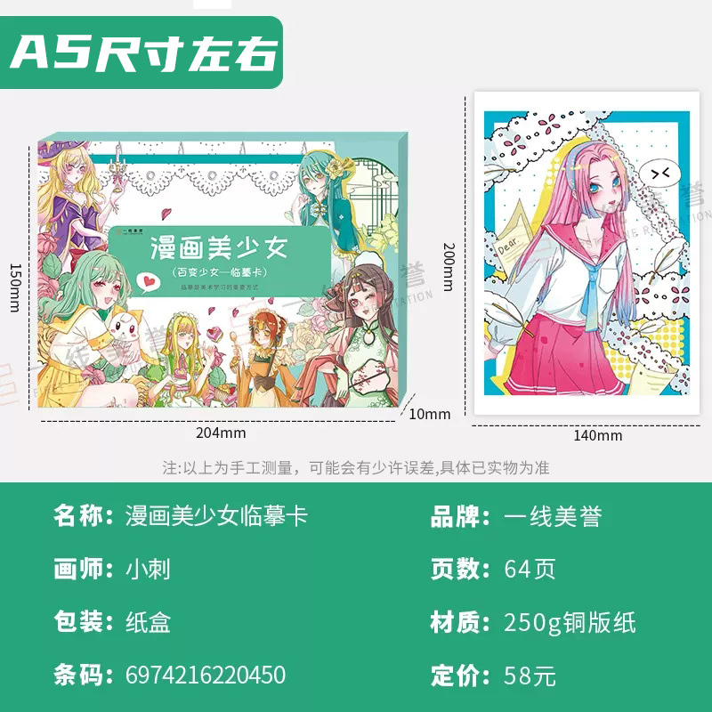 漫画美少女临摹卡 漫画人物绘画入门自学零基础步骤对应完整线稿新手初学手绘临摹画册本技法教材书籍美术动漫绘画漫画基础教程书