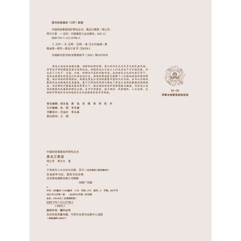 周立军 社 黑龙江聚落 中国建筑工业出版 著 周天夫 人文地理 风景园林 城乡规划 中国传统聚落保护研究丛书 正版