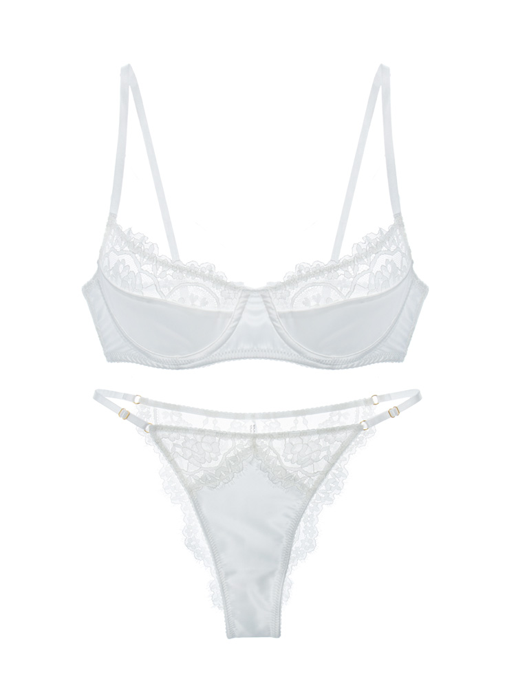 内衣 细带文胸套装 今日暴击:性感镂空 性感白色蕾丝缎面薄款