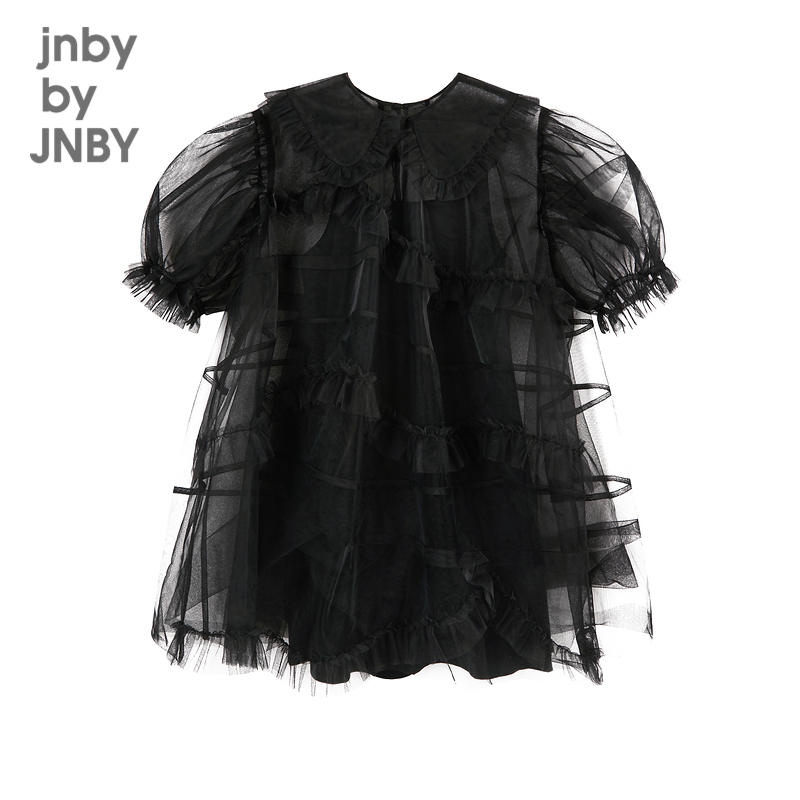 茬客甜美气质连衣裙2025夏新款 方领重工钻链收腰蓬蓬小黑裙 泡泡袖
