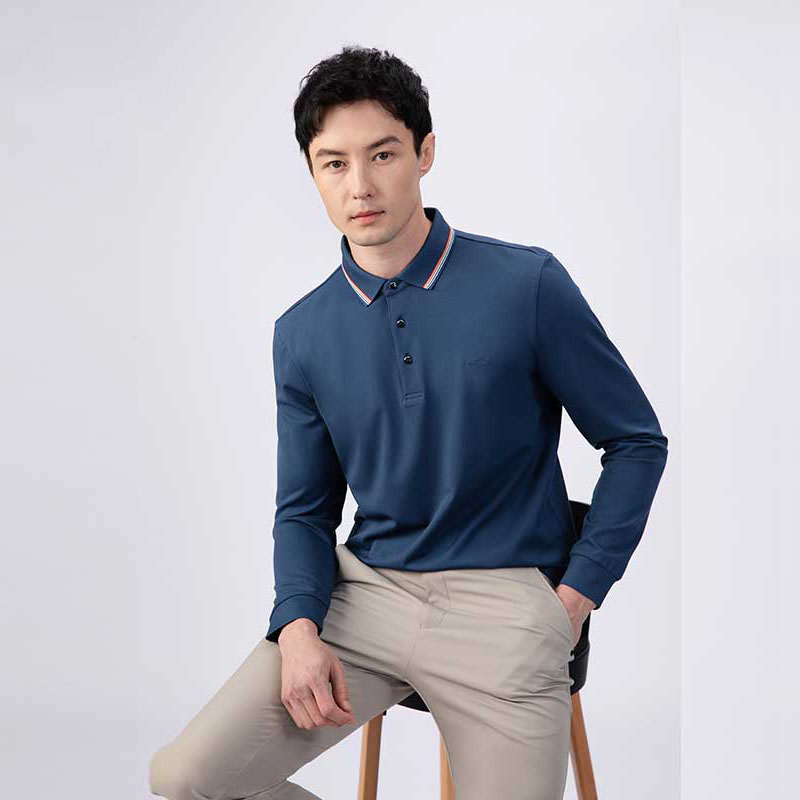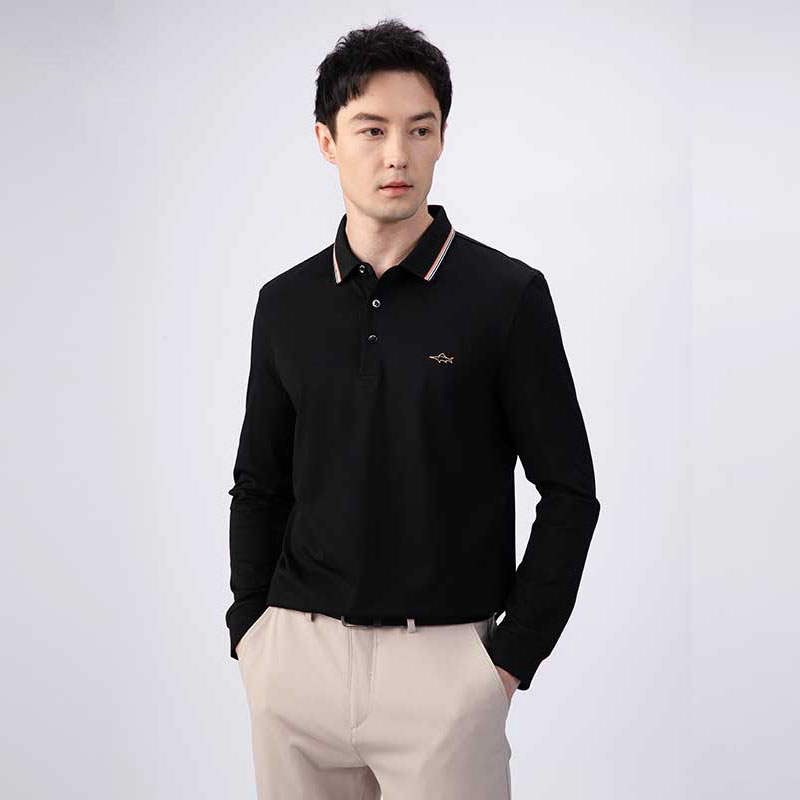 潮流纯色长袖 回力POLO衫 翻领宽松休闲打底衫 2025新款 T恤 男春秋季