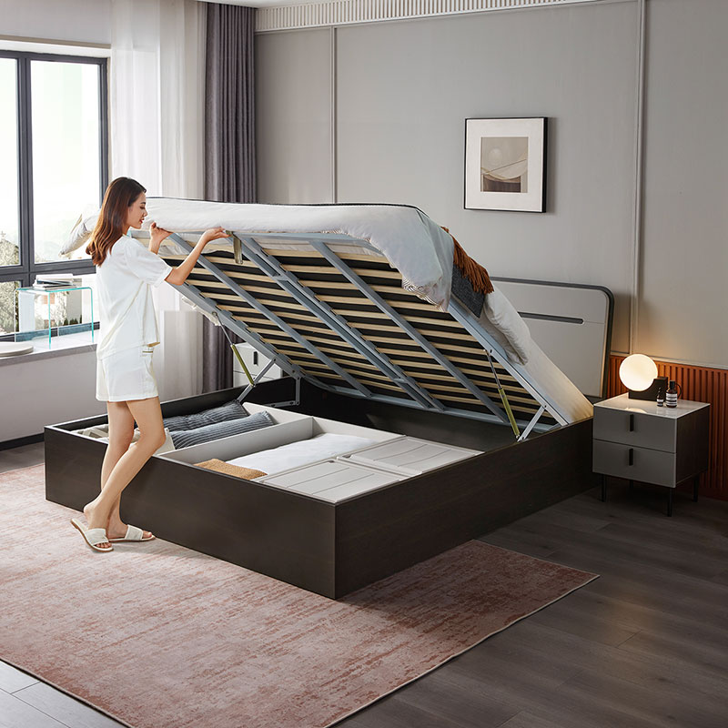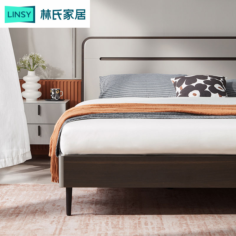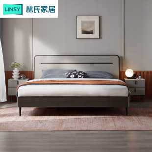 林氏家居现代卧室1.8米双人小户型高箱储物地台床政府补贴