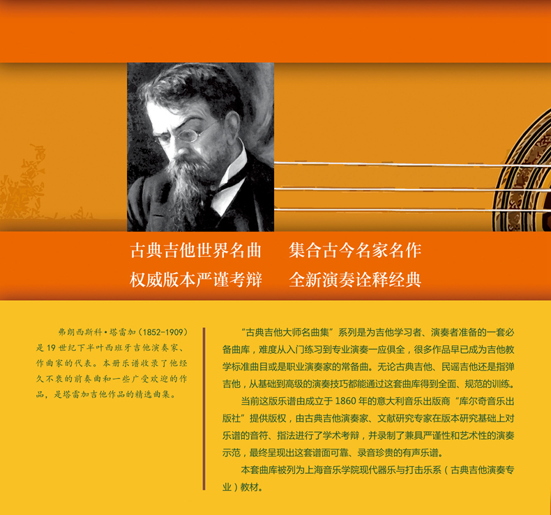 扫码 赠送音频 古典吉他大师名曲集系列 弗郎西斯科·塔雷加 引进图书 前奏曲和部分作品 原版 上音社自营 为吉他创作