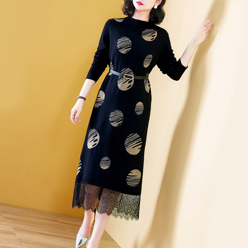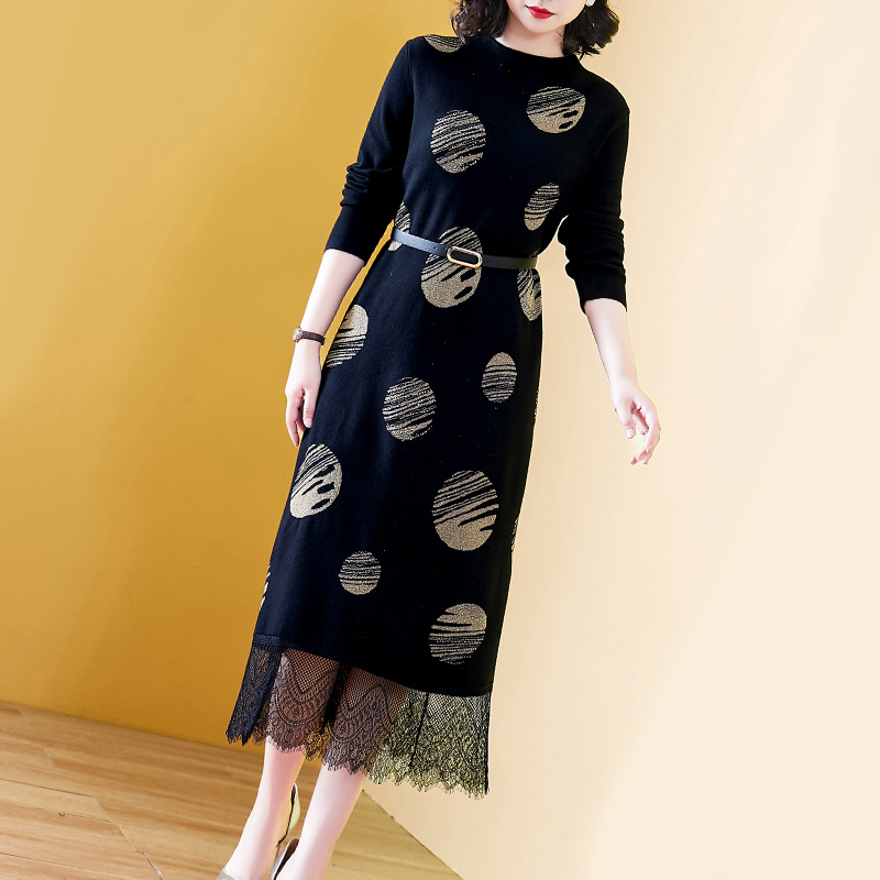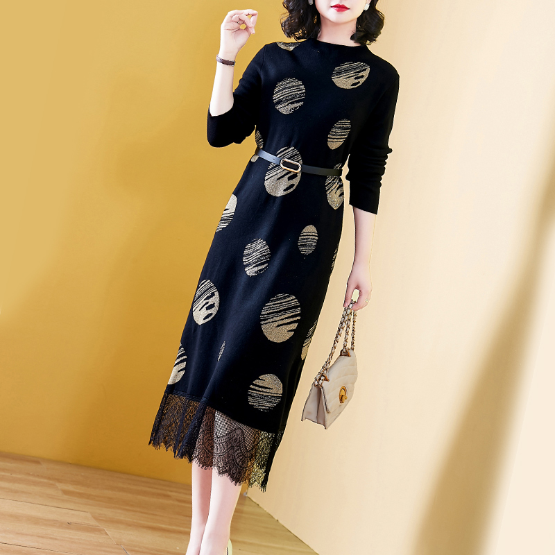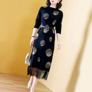 过膝长袖 打底2023年新款 气质蕾丝女人味裙子 毛衣裙春秋韩版 长款