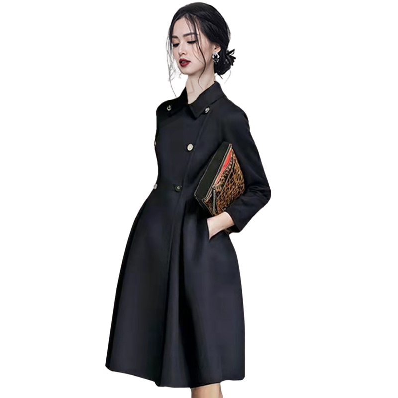 收腰显瘦女装 高端时尚 新款 连衣裙女2025春季 春秋大衣外套 气质长袖