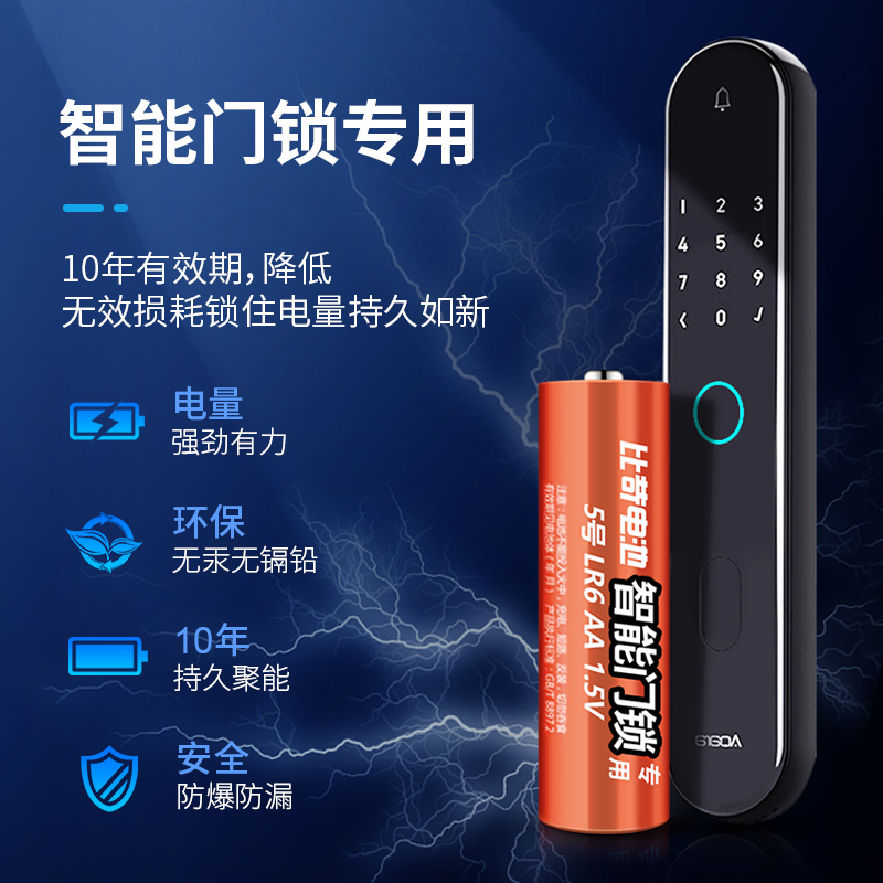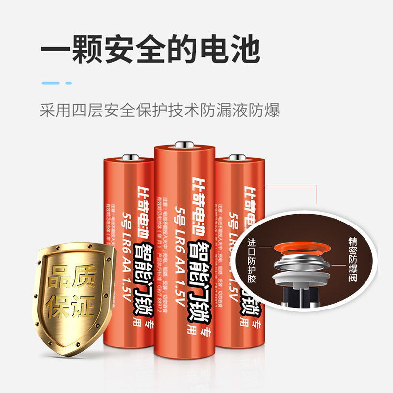 碱性电池5号电子锁指纹锁适用电池密码 比苛 锁防盗门遥控器电池1.5V五号AA干电池不漏液 智能门锁适用电池