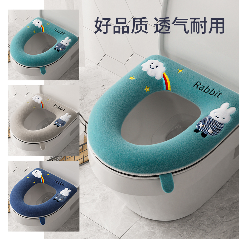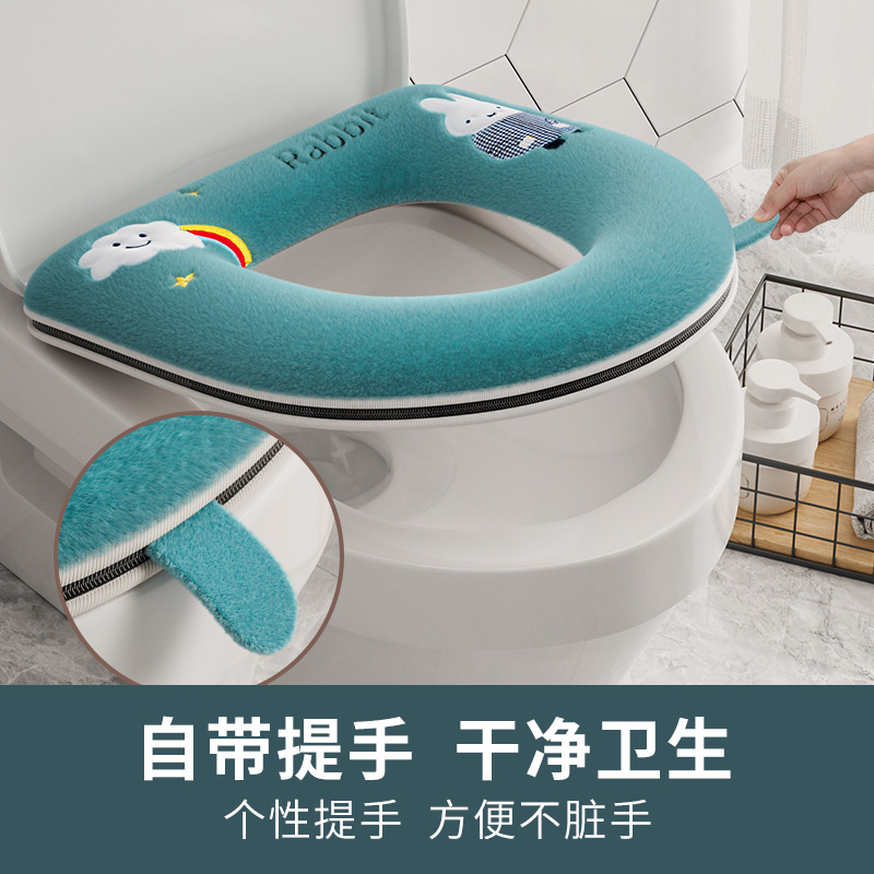 秋冬马桶坐垫四季 马桶圈 通用加绒家用坐便器垫套加厚可水洗拉链款