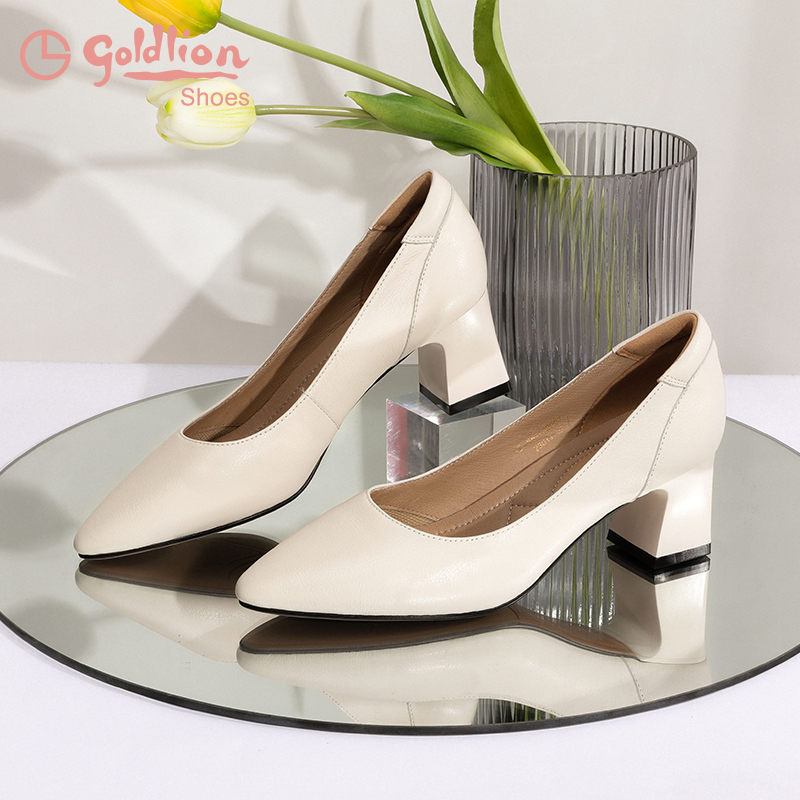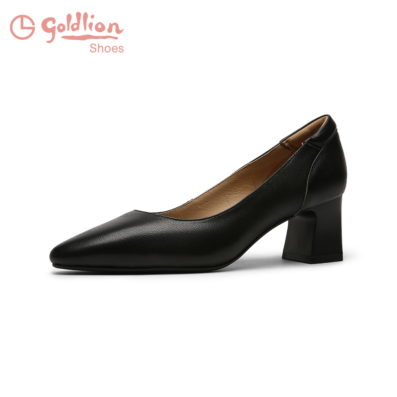 真皮尖头粗跟单鞋 金利来职业高跟鞋 百搭黑色通勤工作鞋 女鞋 女 春季