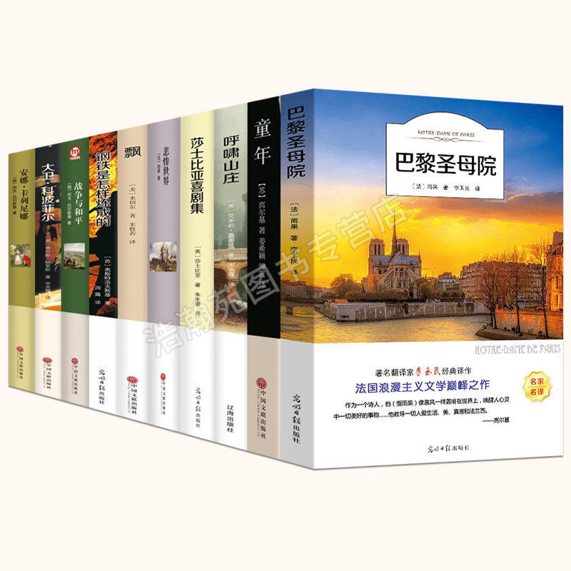 全套10册巴黎圣母院童年呼啸山庄莎士比亚喜剧集悲惨世界飘钢铁是怎样炼成 战争与和平大卫安娜卡列尼娜世界名著青少年中课外读物